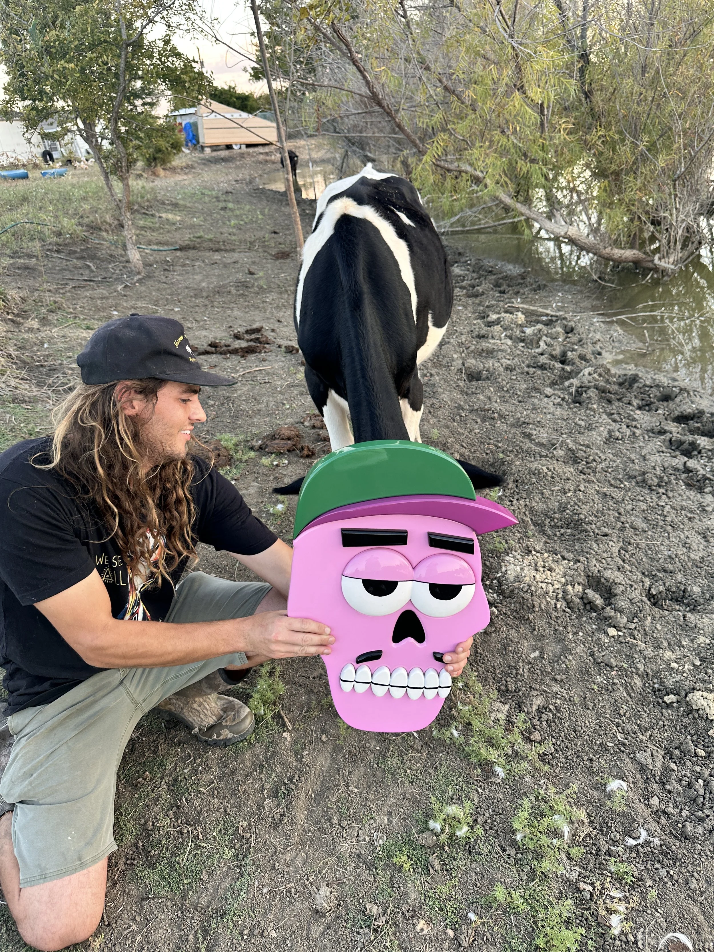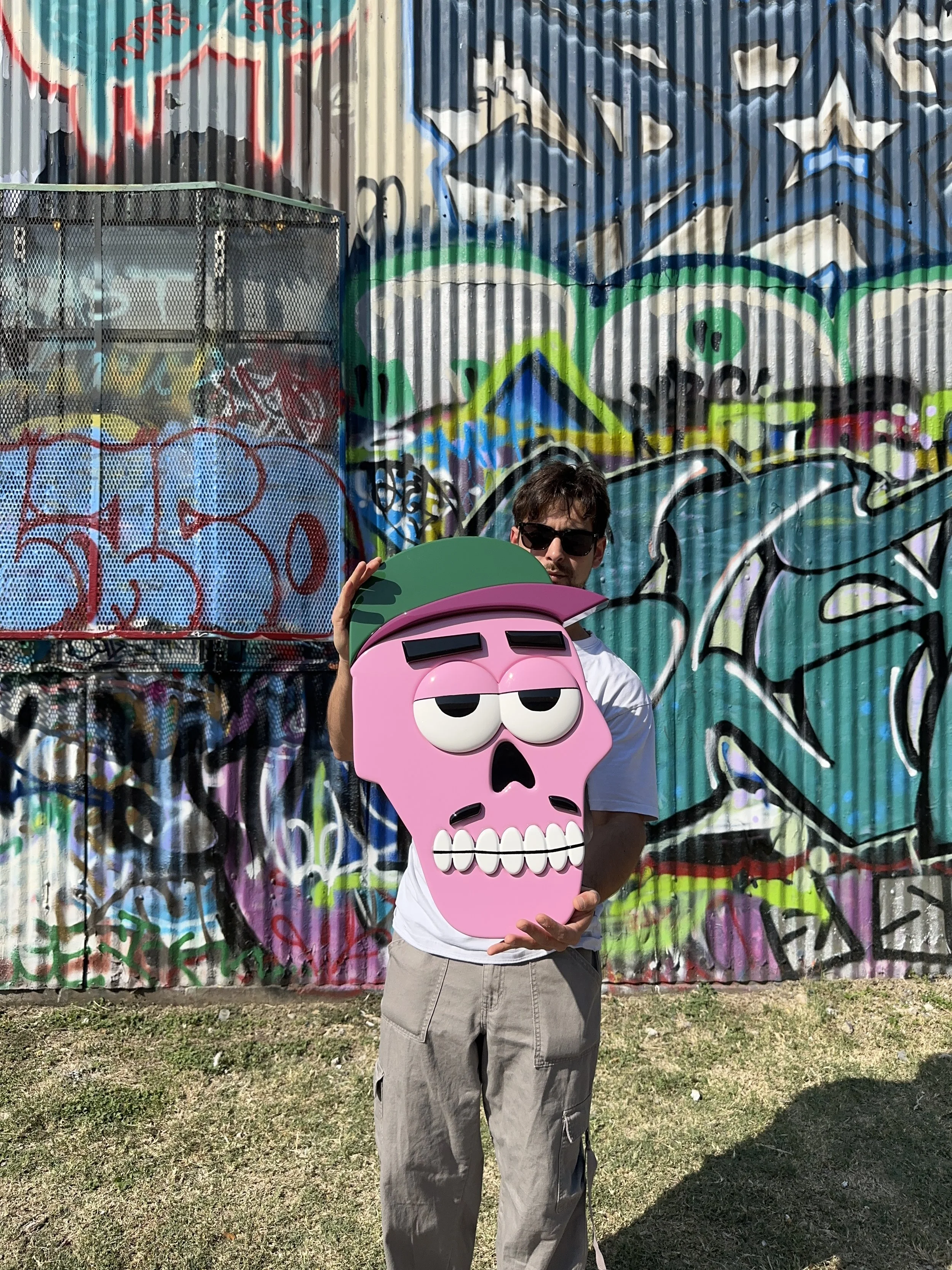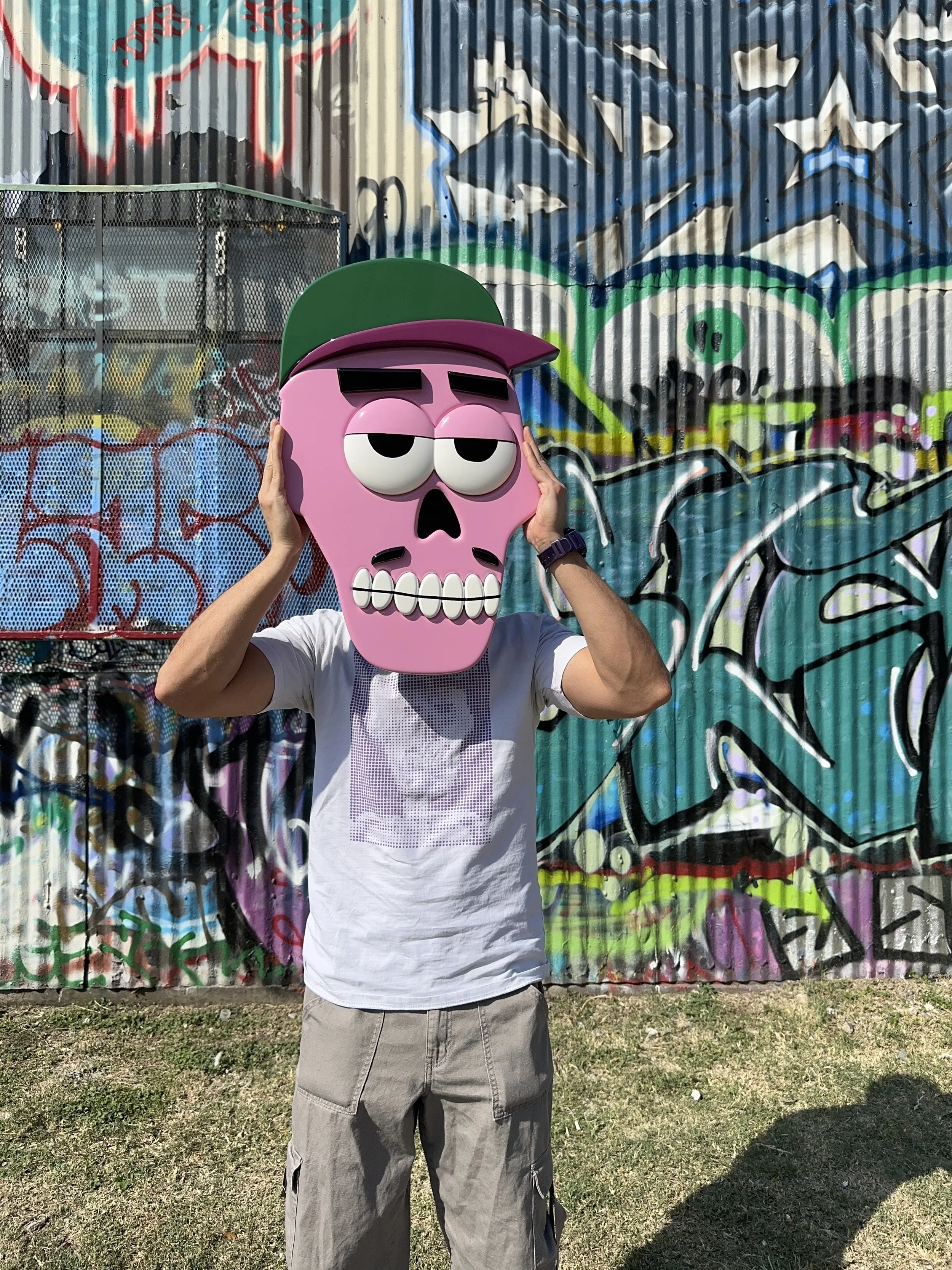 Juan Kiss was meticulously designed using 3D software and crafted with precision on a CNC machine. Constructed from wood, these heads are then finished with vibrant colors and high gloss finish.