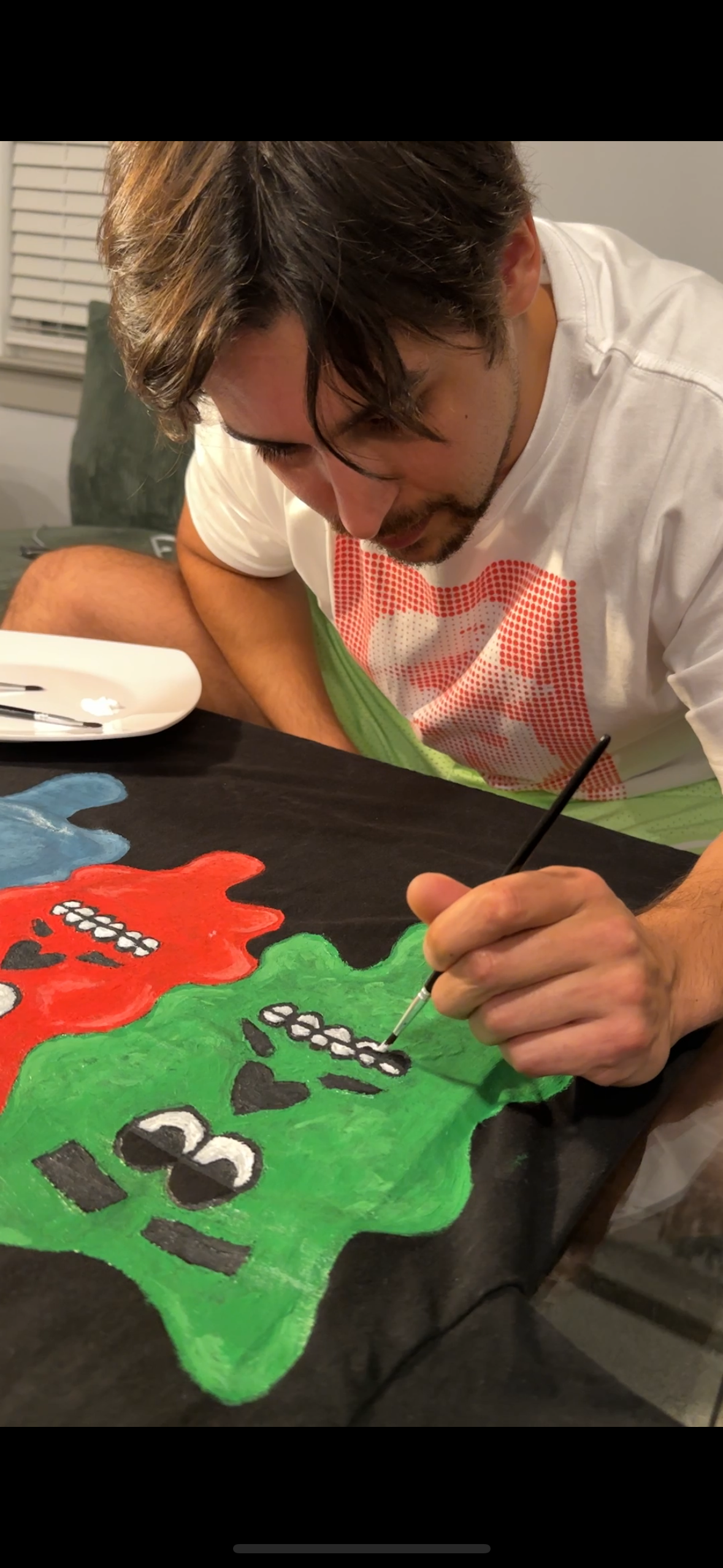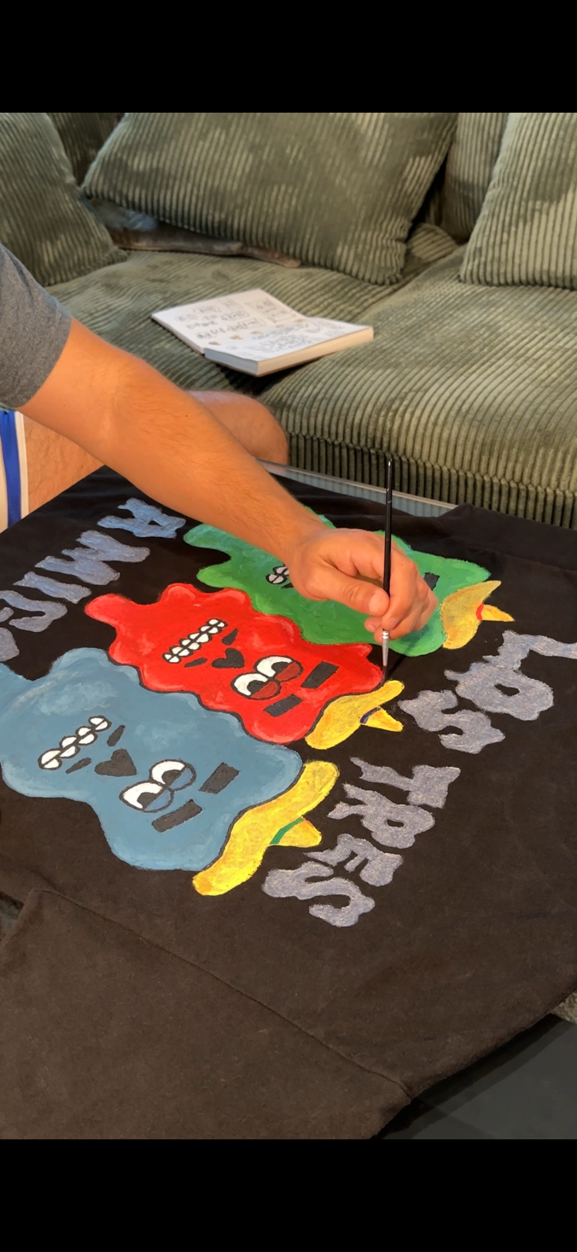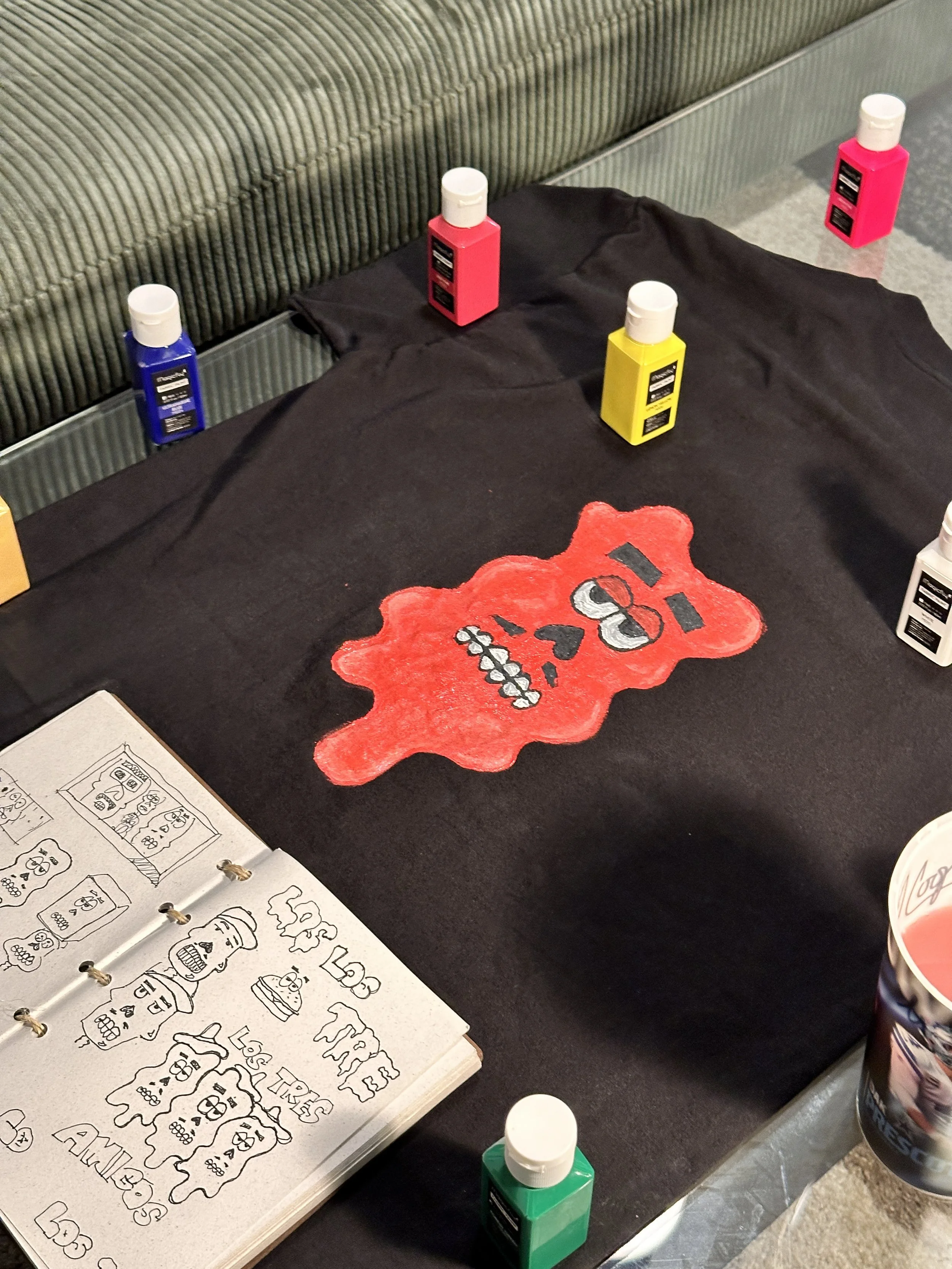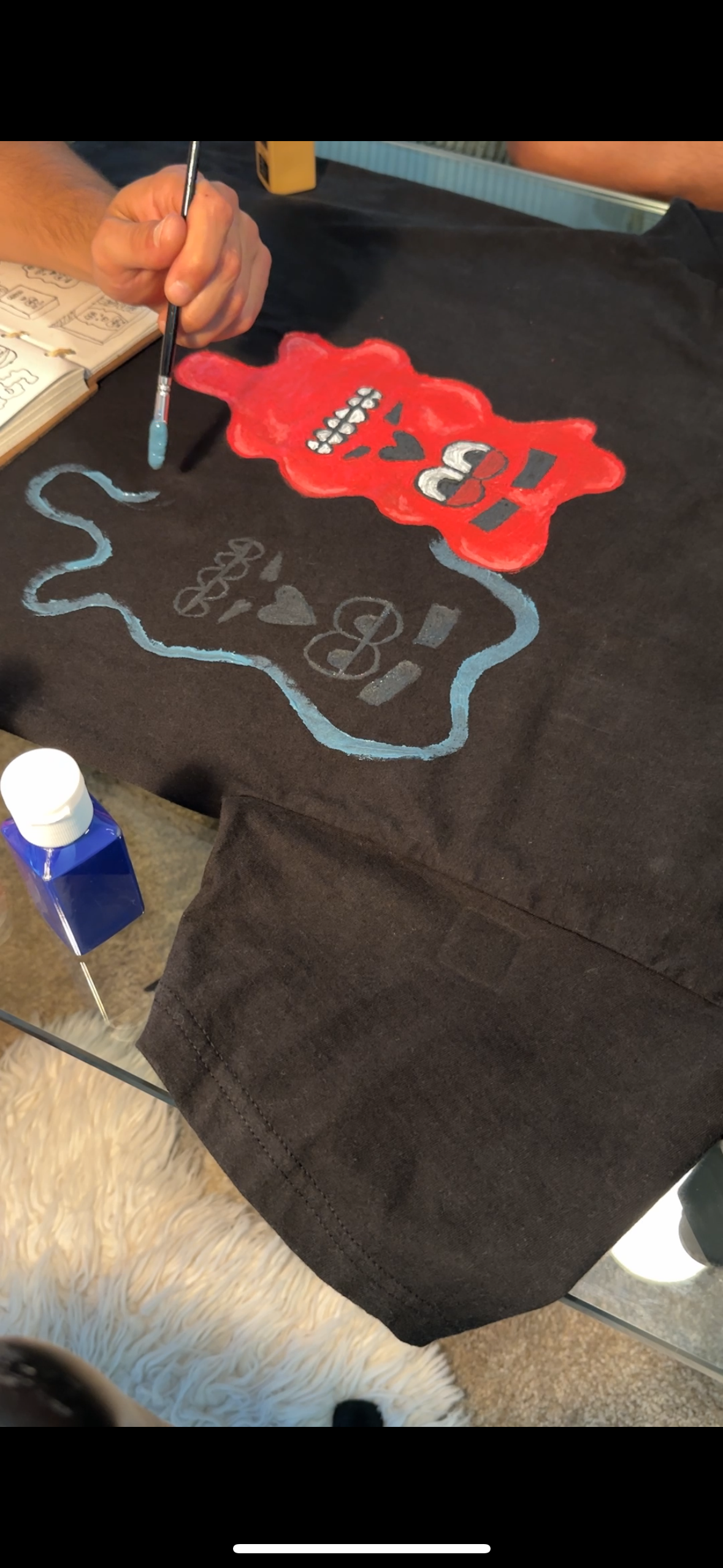 Introducing the brand’s very first, hand-painted shirt created exclusively for a pop-up event. I have never painted a shirt before, and though I initially expected the process to take just a couple of hours, it ended up consuming about 8 hours over three days.