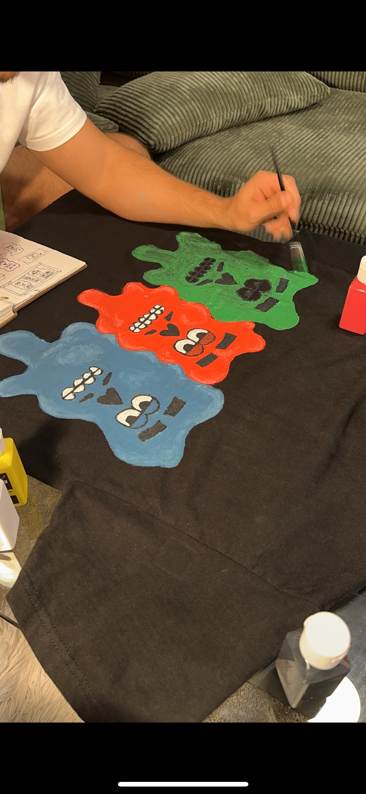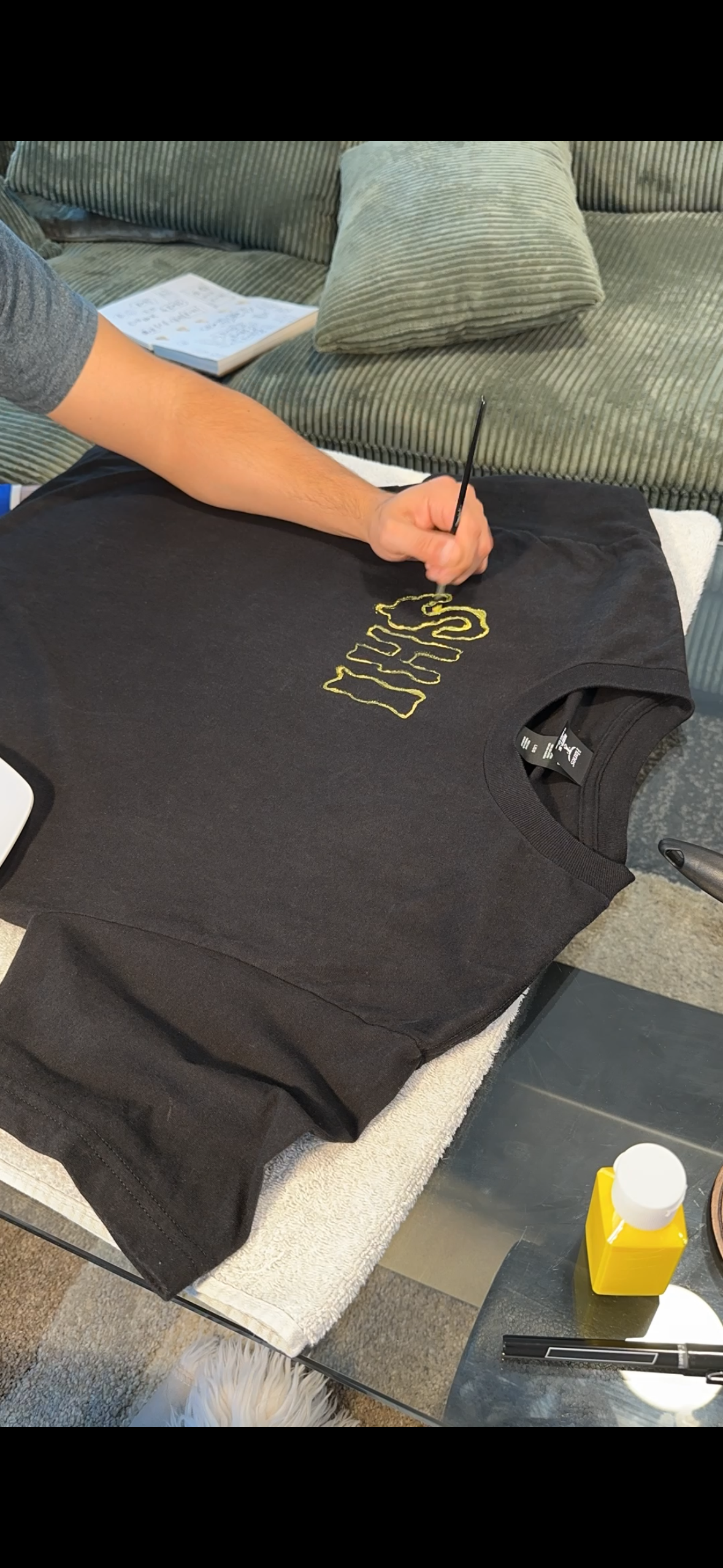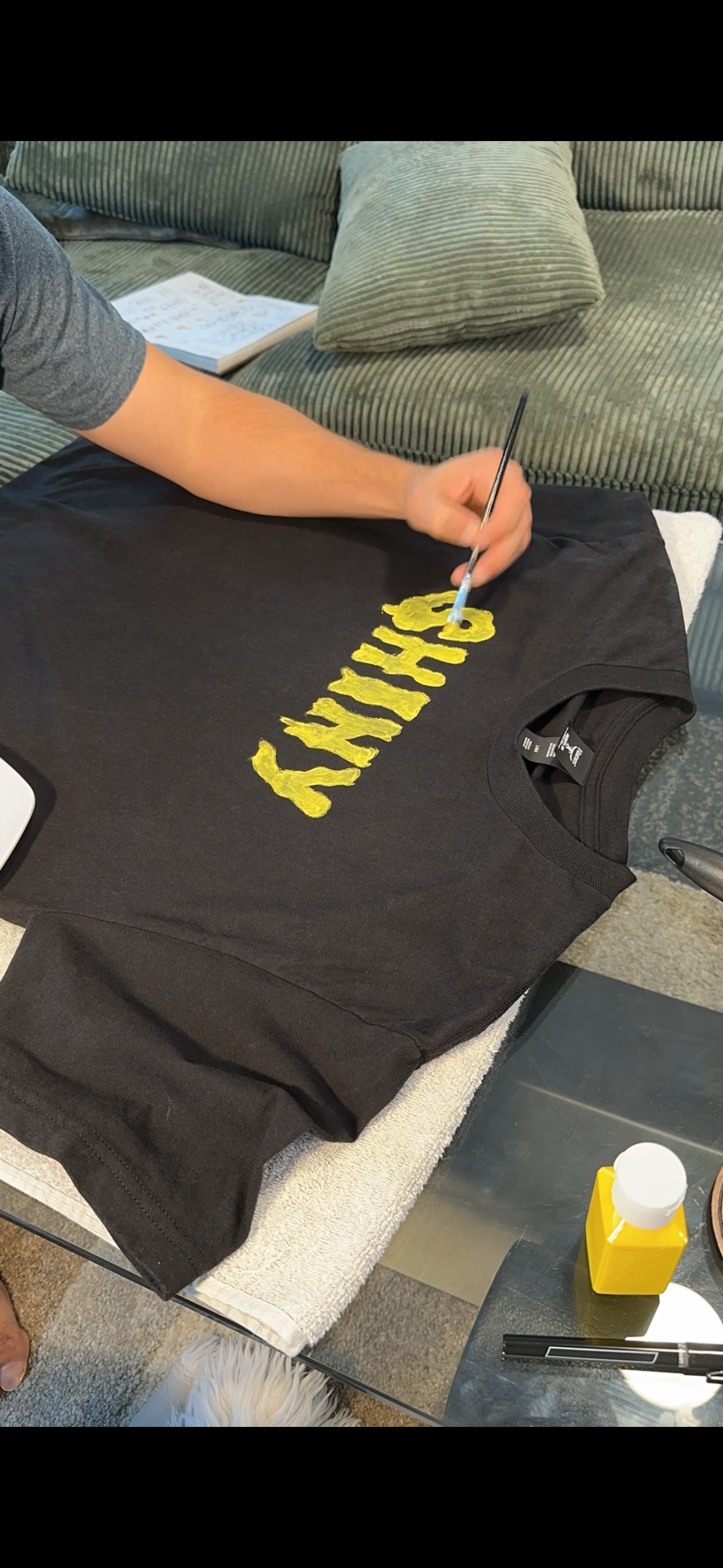 Introducing the brand’s very first, hand-painted shirt created exclusively for a pop-up event. I have never painted a shirt before, and though I initially expected the process to take just a couple of hours, it ended up consuming about 8 hours over three days.