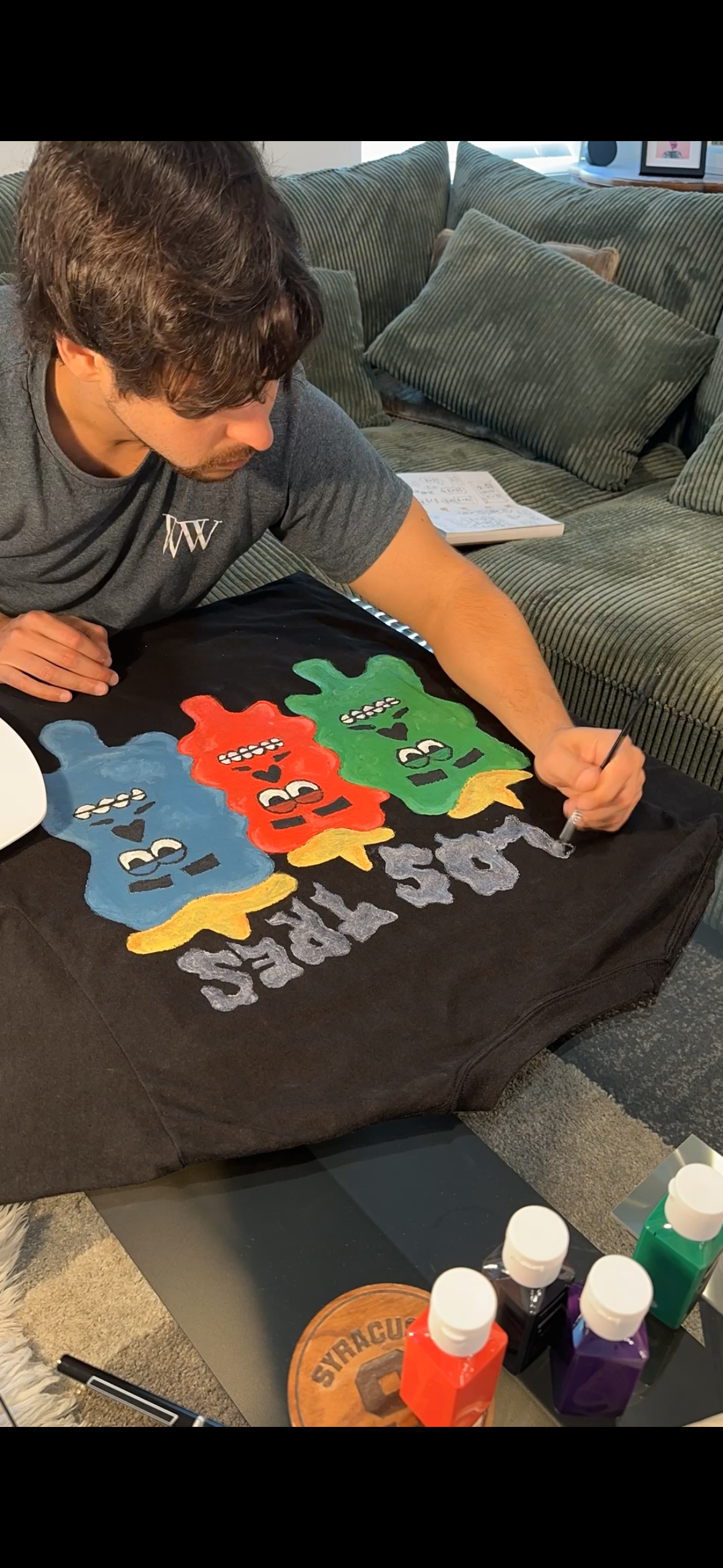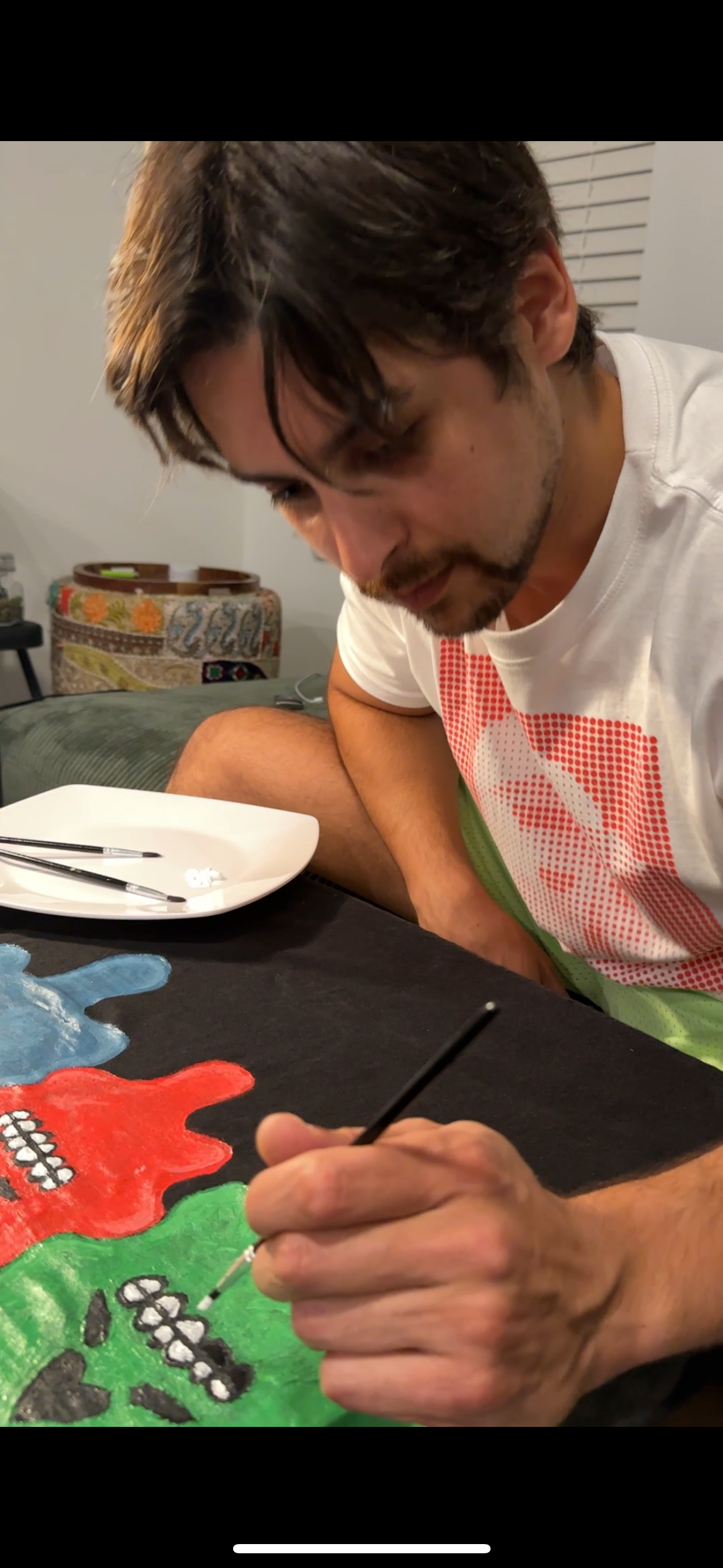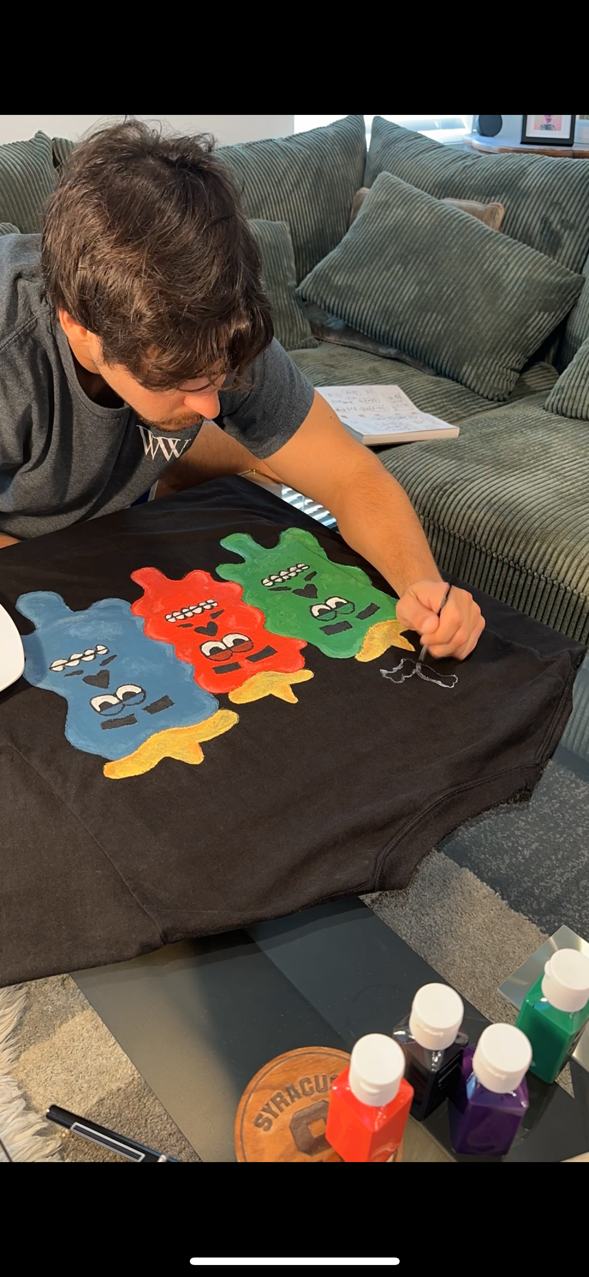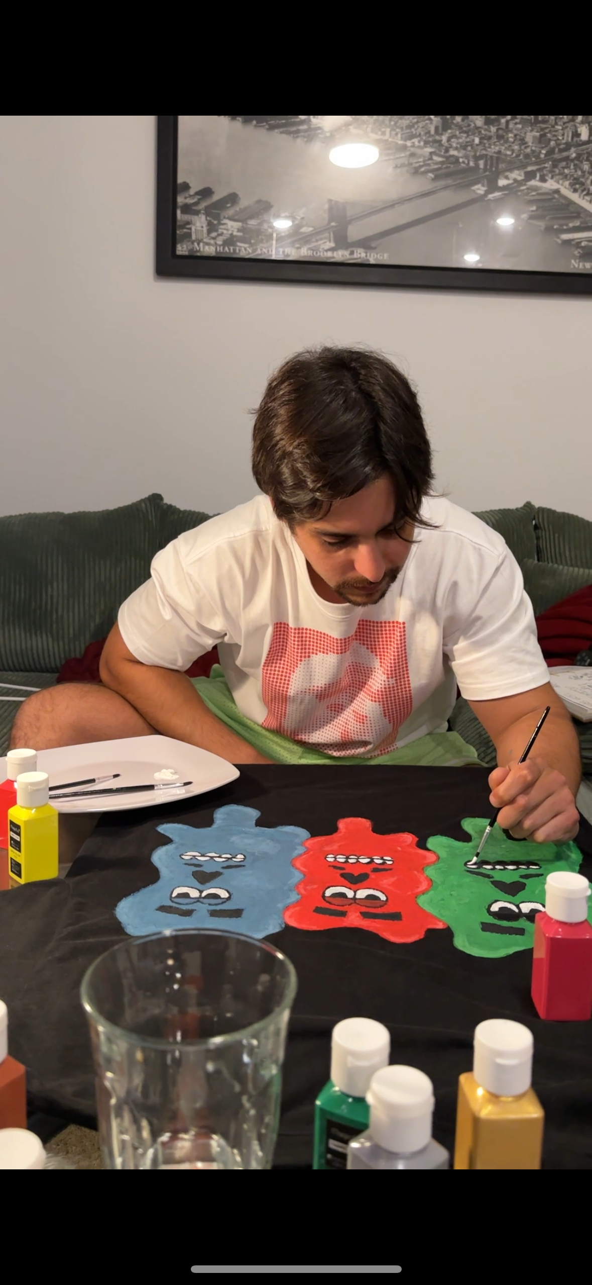 Introducing the brand’s very first, hand-painted shirt created exclusively for a pop-up event. I have never painted a shirt before, and though I initially expected the process to take just a couple of hours, it ended up consuming about 8 hours over three days.